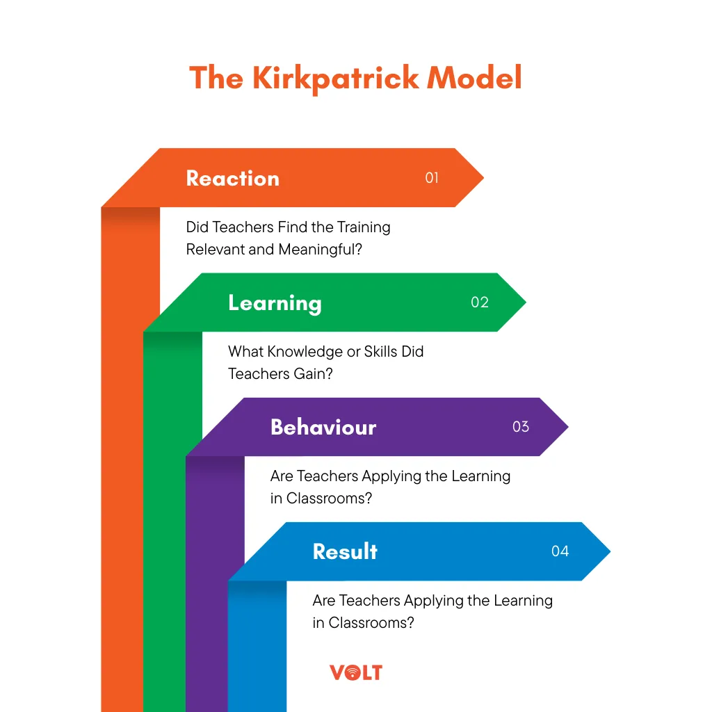 Schools can evaluate training using the Kirkpatrick Model: